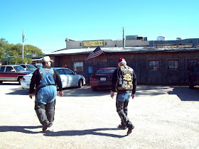 Ted and Nubbin get ready to leave. For more on this great Texas BBQ cafe, see this link: www.clarksoutpost.com